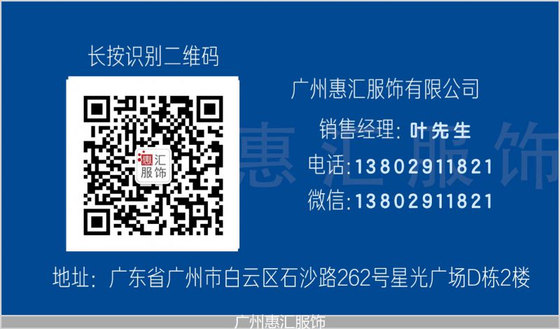 广州惠汇服饰有限公司货源价格优势:拿货价按原品牌吊牌价格的0.5折-1.2折,低于生产成本供货,是品牌折扣店、女装精品店、特卖场工厂店货源的进货渠道。