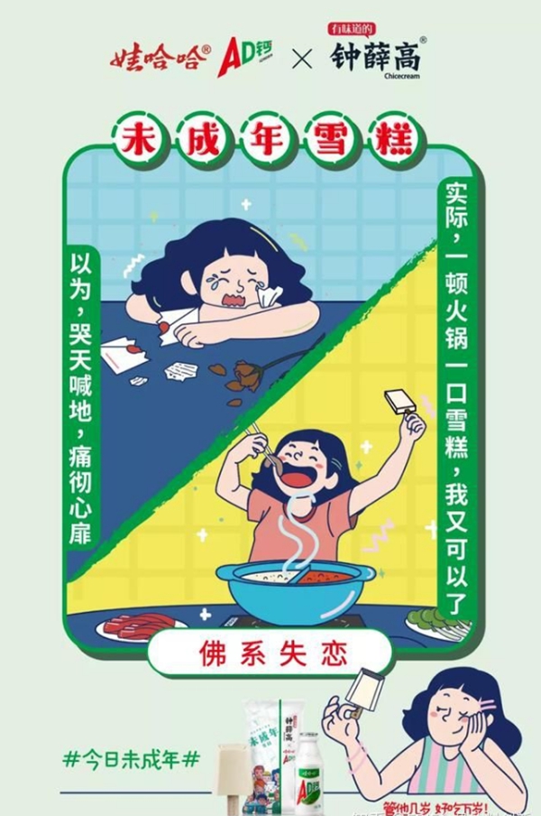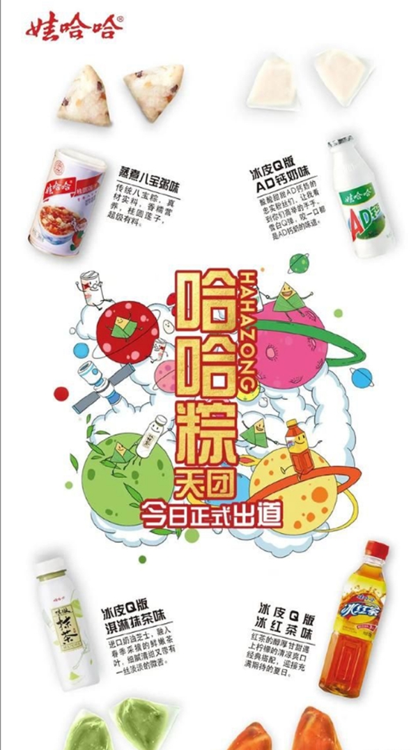 随着新生代消费者的成长,有一部分没有跟上脚步的品牌已经被淘汰,一些老牌子也因为被贴上了固化标签而业绩下滑。哇哈哈就是一个,但是哇哈哈并没有气馁,并且一直在尝试创新“再创业”。时至今日,哇哈哈也一直活跃在人们的视野里。为了跟上新生代消费者的步伐,哇哈哈持续推陈出新,推出各种跨界联名,相继推出AD钙奶味月饼、娃哈哈哈哈粽,把跨界玩得风生水起。AD钙奶作为哇哈哈目前最火的大IP也不负众望,圈粉圈到海外。